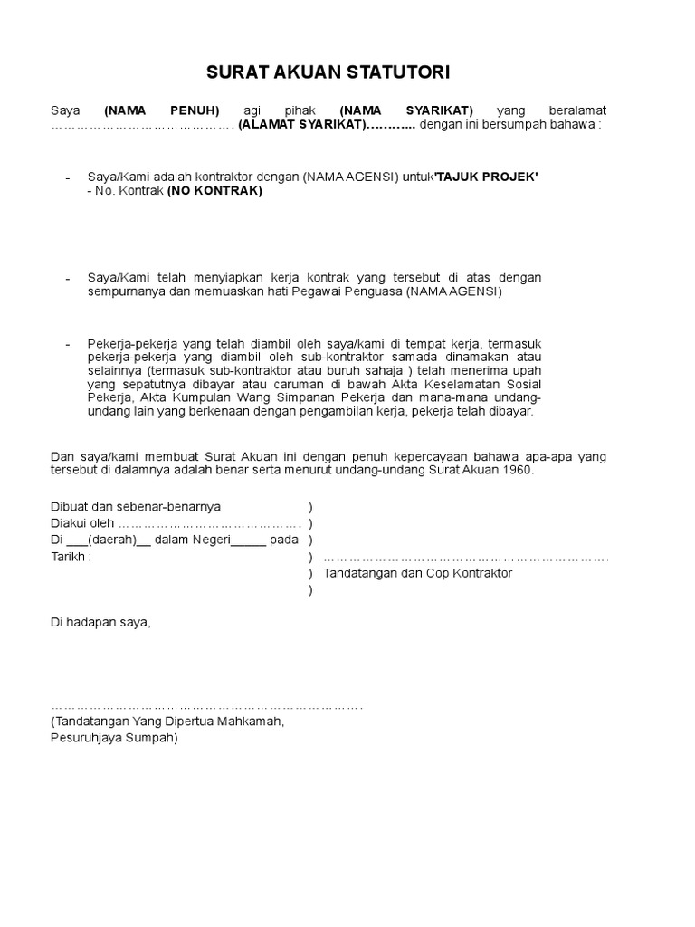 Borang Akaun Siap Kerja Kontraktor Contoh Surat Akuan Otosection